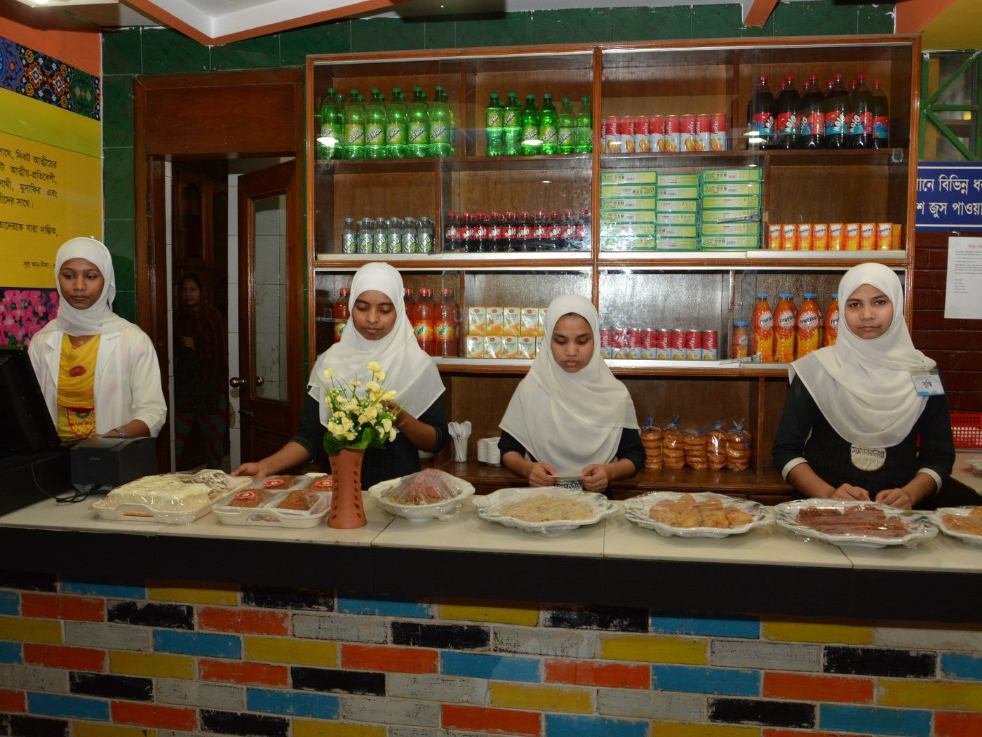 Cafeteria located within the Ad-din facilities is the designated cafeteria for the students of ADMMC. It serves a range of healthy and nutritious food. Cafeteria services are available at the 1st and 3rd floor of the Hospital Building with a total seating capacity of 156 people including separate arrangements for women. There is a total of 45 staff in the cafeteria to whom health and hygiene is a priority. The 1st floor cafeteria is open from 4 am to 10 pm every day, while the 3rd floor cafeteria serves food from 8 am till 8 pm. Additionally, there is a small coffee shop on the 2nd floor which serves snack items at all hours.